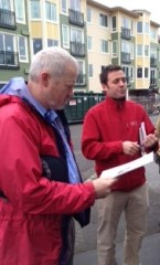 Seattle Mayor Mike McGinn (left) visited Wedgwood on March 10, 2012. Wedgwood activist Per Johnson explained the process of neighborhood involvement in land use issues with the new Jasper Apartment construction (in background).