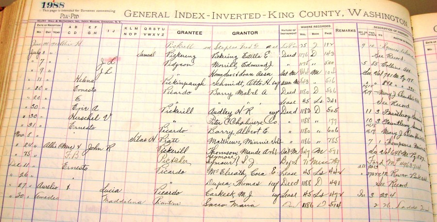 Deed index showing Ernesto Picardo’s purchase of farm property from Mabel Barry.