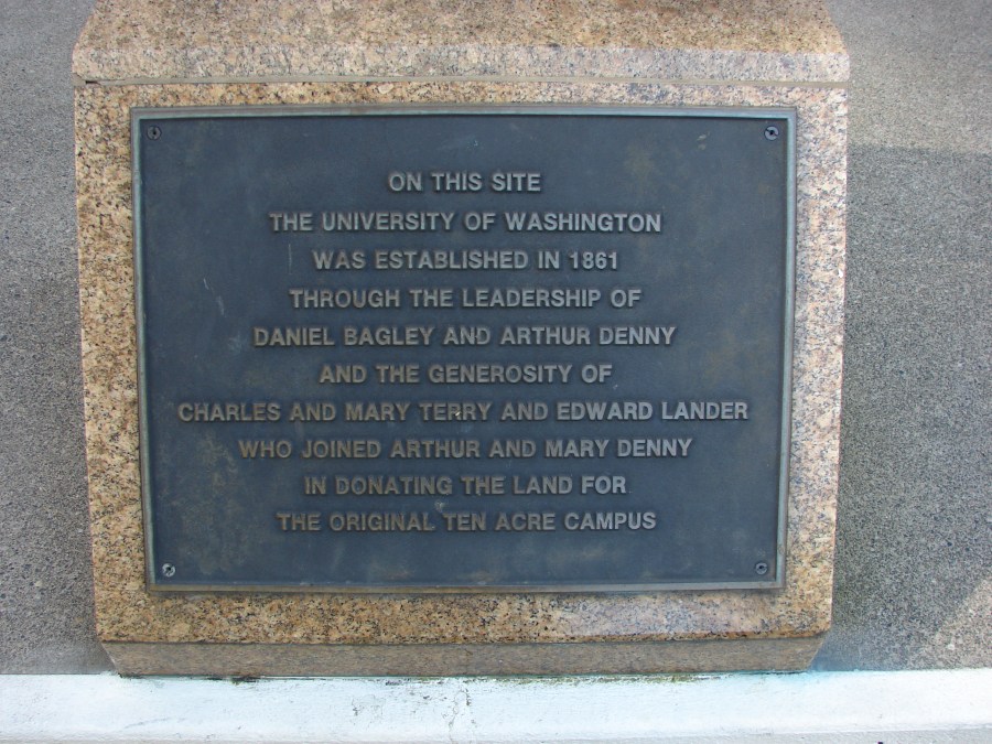 The Olympic Hotel at 4th & University is on the original site of the University of Washington, as noted by the historical marker.