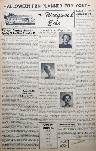 Photos of pages from the Wedgwood Echo Community Club newspaper, October 1955.