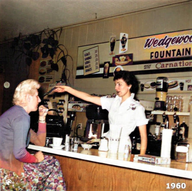 Wedgewood Pharmacy’s soda fountain and lunch counter offered soft drinks, soup, sandwiches and real “malteds” made with ice cream and flavored syrup.