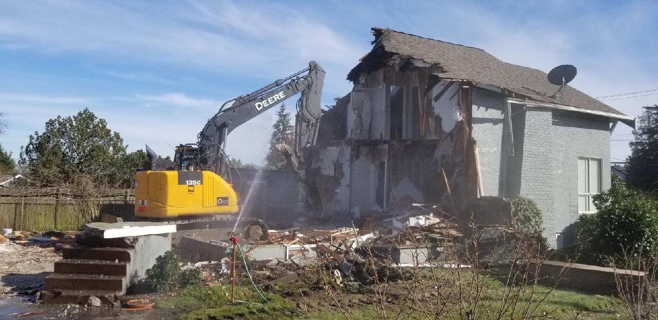 Demolition of 3202 NE 75th Street on March 16, 2021, showing work proceeding from the back of the house.