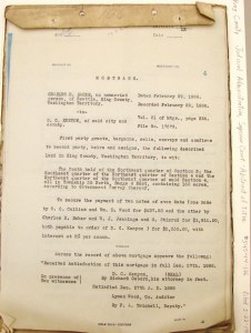 Title abstract showing the purchase of property owned by Capt. DeWitt C. Kenyon, a purchase of 1888 by Charles H. Baker and some co-investors. Document on file at the Puget Sound Regional Archives, Bellevue, WA.