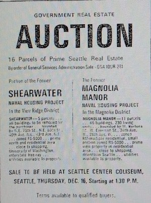 Shearwater auction notice.Seattle Times November 16 1965 page 22