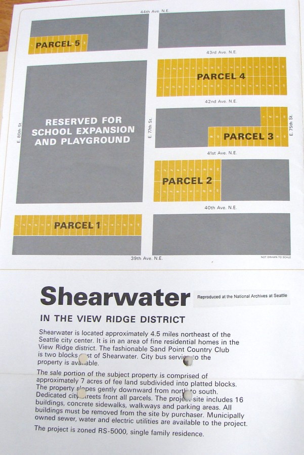 The Shearwater auction brochure. Photo courtesy of the National Archives of Seattle.