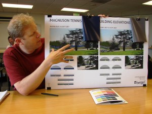 At a Landmarks Board meeting in May 2012 an architect presented plans for the placement of portable classrooms at Eckstein Middle School.