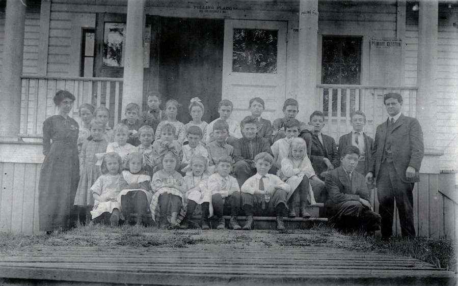 By 1914 the Maple Leaf School had two classrooms, one for younger and one for older children. Kelly, eldest of the Nishitani children, is in the front row next to teacher Mr. Thomas. Kelly’s siblings had not yet been brought from Japan.