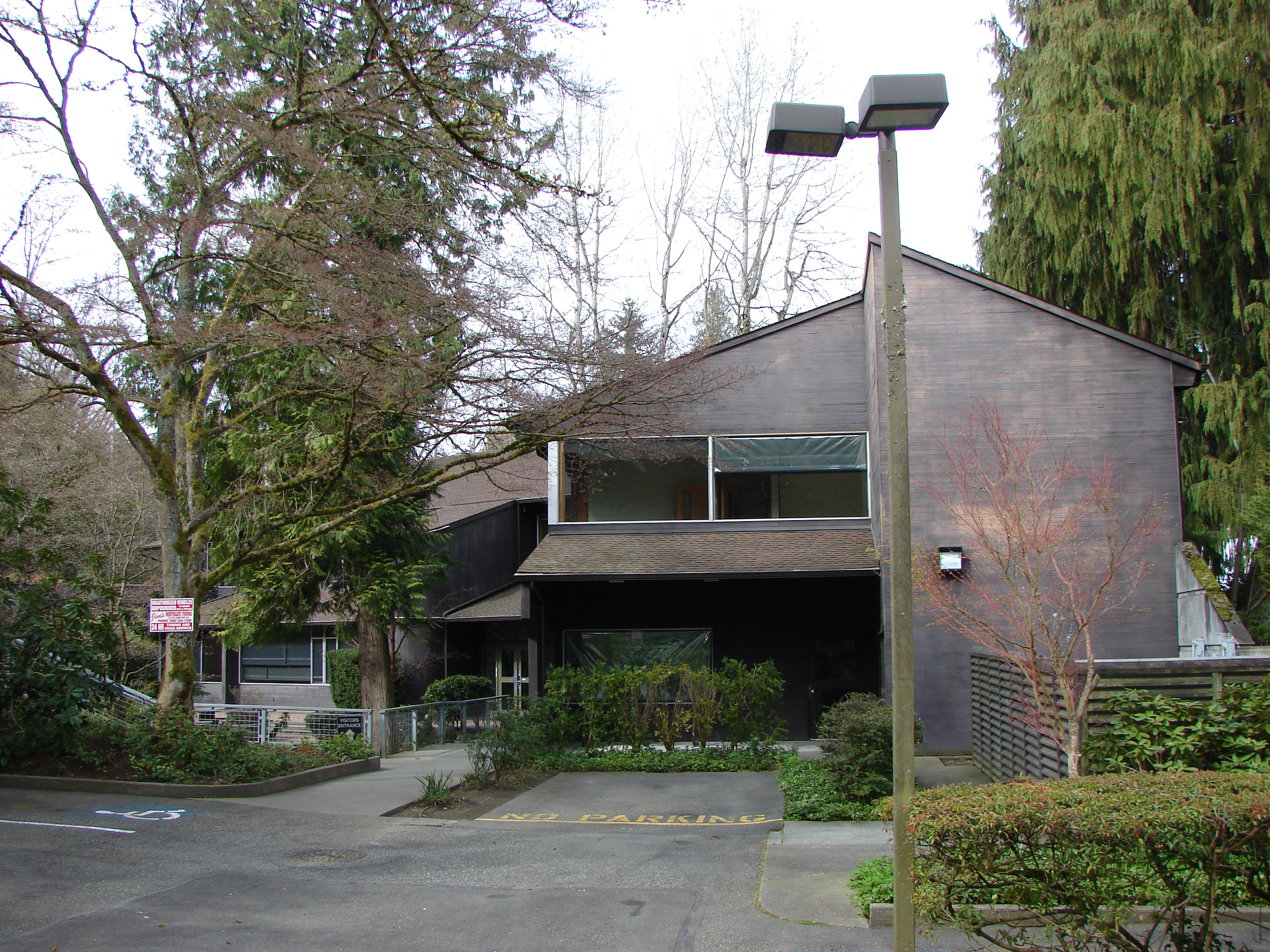 As viewed from the parking lot, the building on the former Oriental Gardens is set in its site with beautiful landscaping. Photo by Valarie.