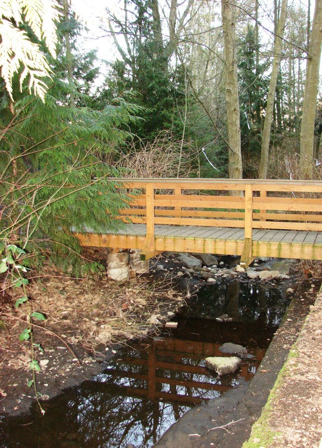 On Meridian Ave North just south of N. 155th Street, the creek flows past Evergreen School.