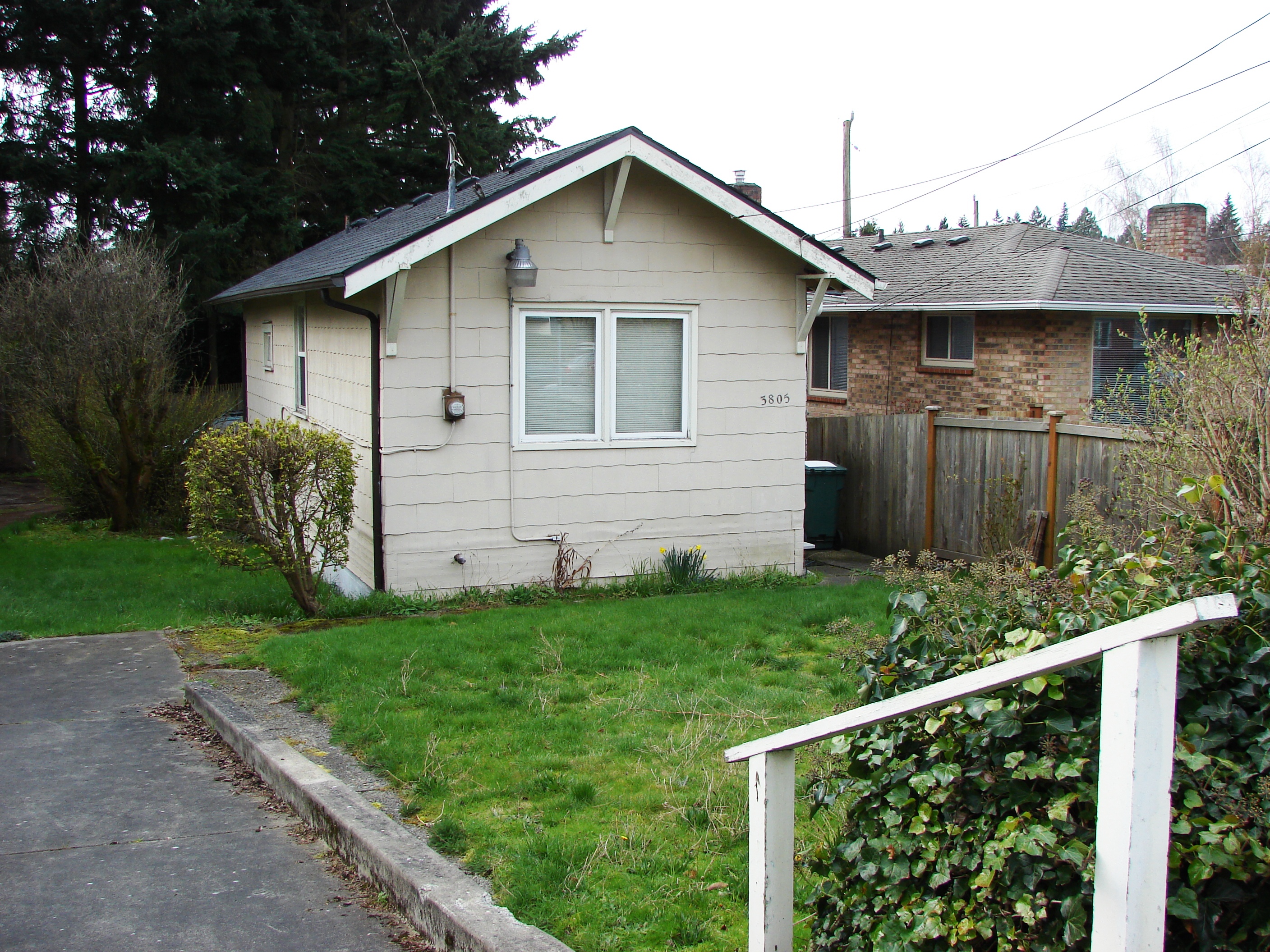 The house at 3805 NE 75th Street was built in 1926 and we can see that it has been there since before NE 75th Street was regraded. NE 75th Street was raised along this segment, and now the house is a little below the level of NE 75th Street.