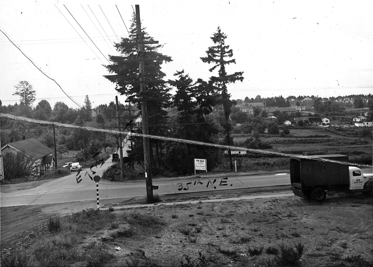 Photo of proposed site of Safeway at 75th & 35th submitted with rezoning application in 1947. Photo #73832 courtesy of the Seattle Municipal Archives.