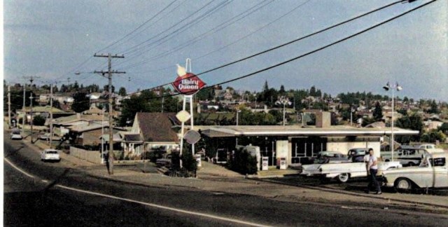 At that time, 1964, there was a gas station to the south (today’s Chevron Food Mart) and another gas station, Richfield, at the present site of the Washington Federal Savings and Pinehurst Child Care, 7334 35th Ave NE. The new DQ building was shoehorned in between the two gas stations.