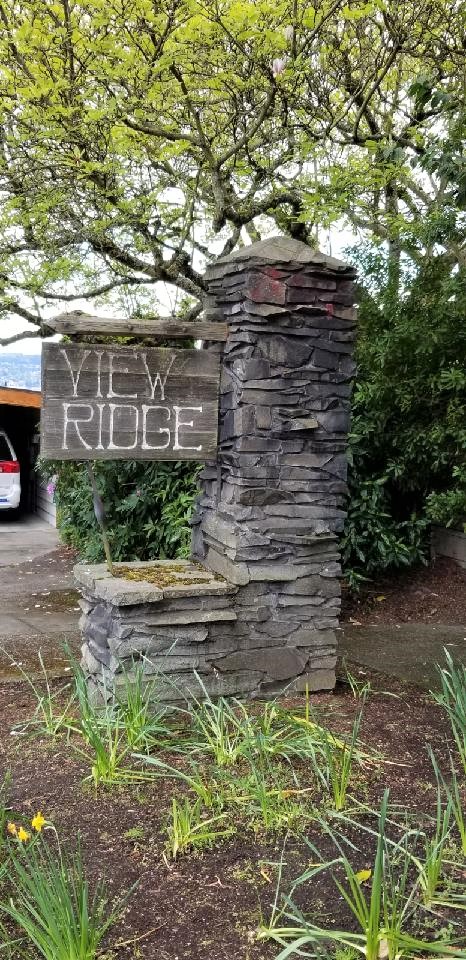 View Ridge marker on NE 65th Street installed by the community club in 1958.