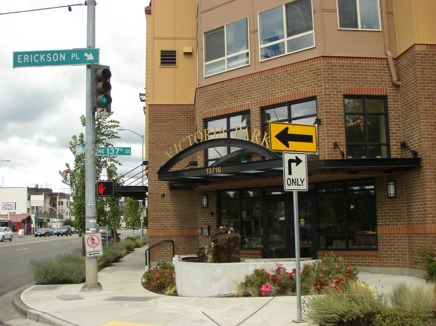 Erickson Place NE merges into busy Lake City Way NE (at left) at NE 137th Street.