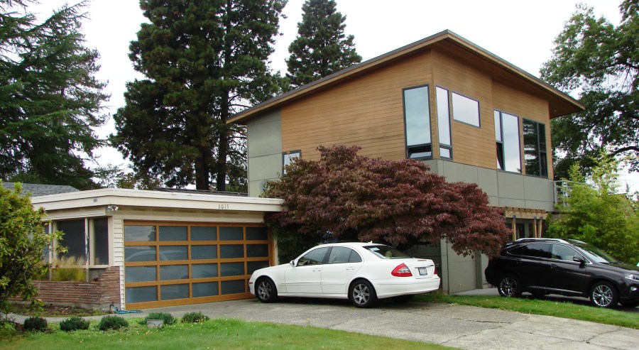 On Crest Drive NE in the Sand Point Country Club we see rebuilding trends. An original 1948 house on the left; on the right a previous house was torn down and this new one built in 2009.