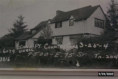 The first clubhouse, built 1927 at the Sand Point golf course, was on NE 75th Street at the corner of 45th Ave NE. It is now a private home.