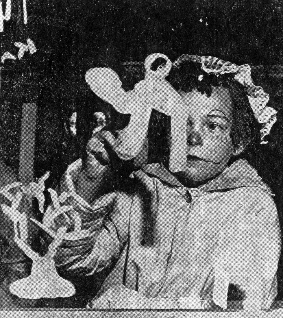 The window-painting episode gave Mr. McVicar an idea for a Halloween activity and store promotion for the next year. At Halloween in 1953 he painted white squares on his store windows and offered prizes for the best paintings in different age groups. The response was overwhelming: so many children came that customers in the store were asked to help with handing out paint palettes and ice cream cones.