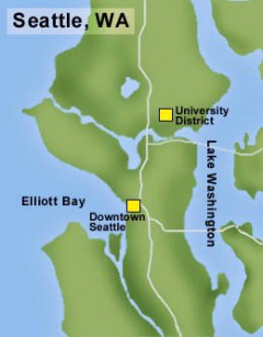 Map of the location of the University District in Seattle. By Chris Goodman, courtesy of HistoryLink.