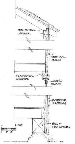 Vertical Plank wall section graphic by Kate Krafft, architectural historian