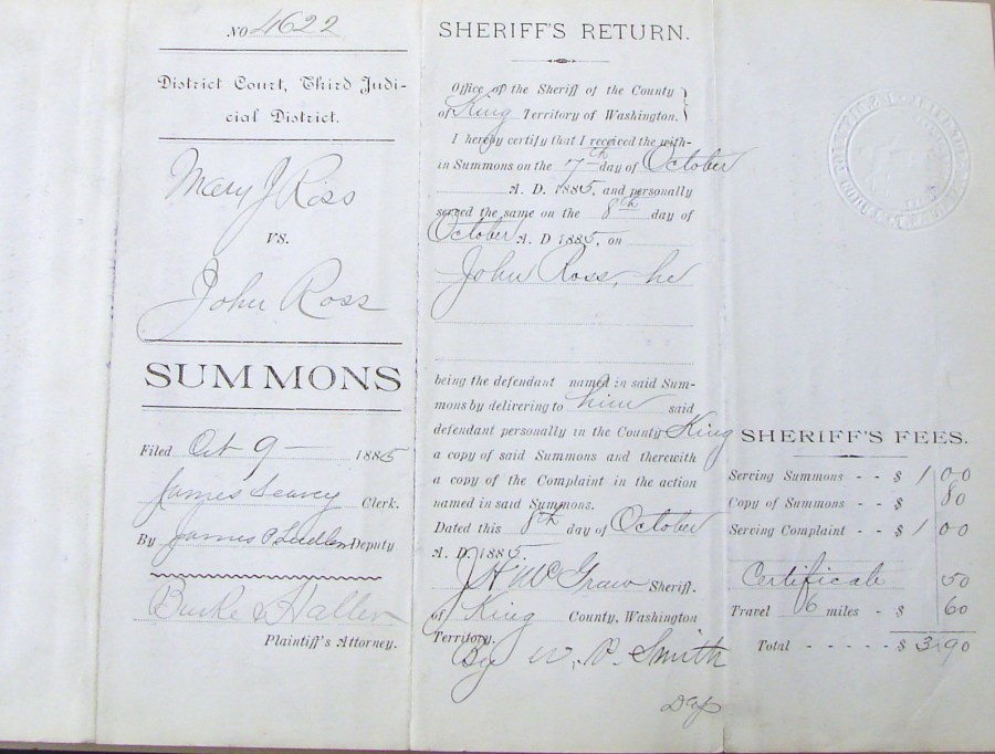 Ross divorce case summons of October 1885