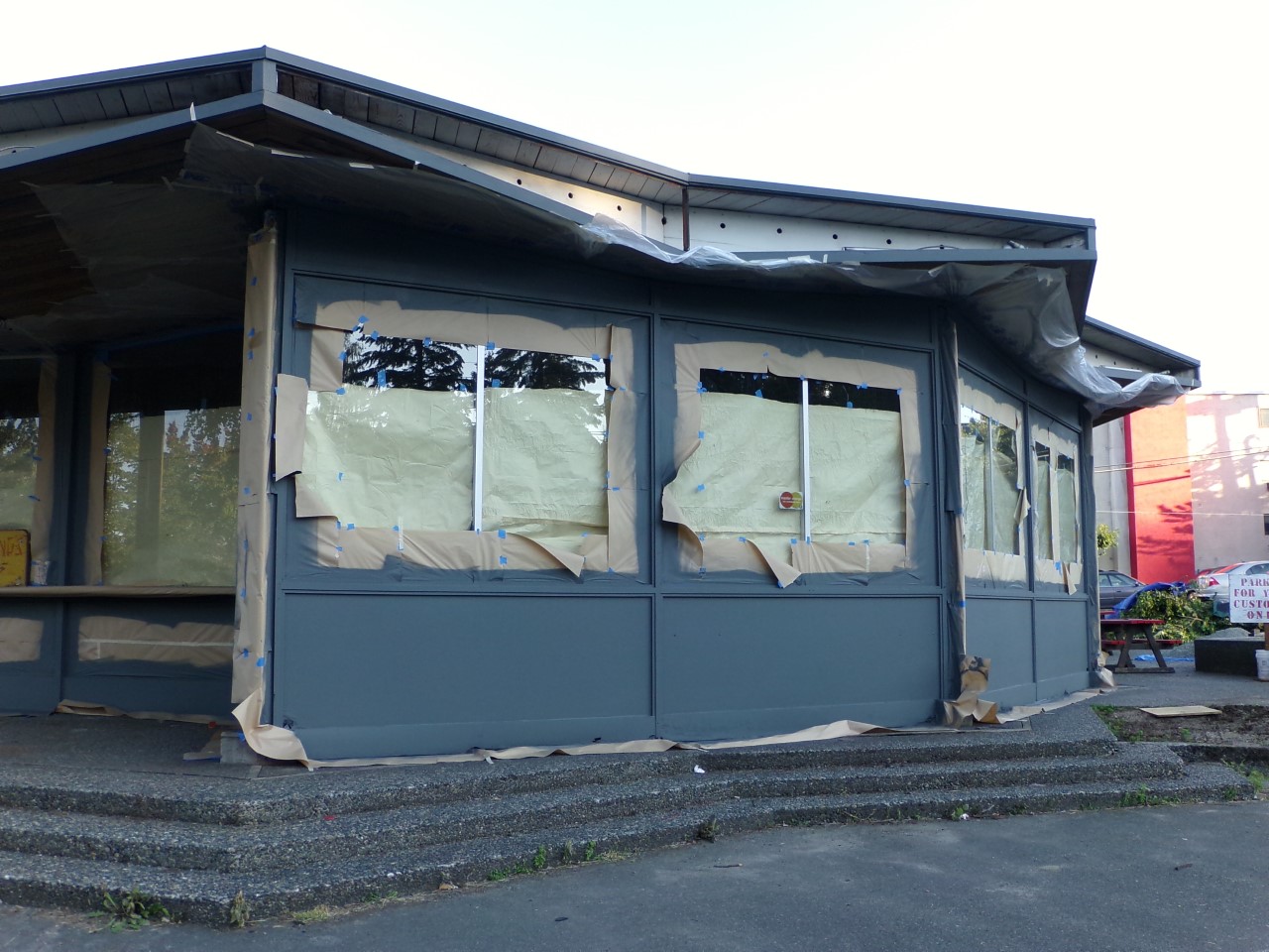 July 2016: the old Ying’s building during renovations to become Growler Guys.