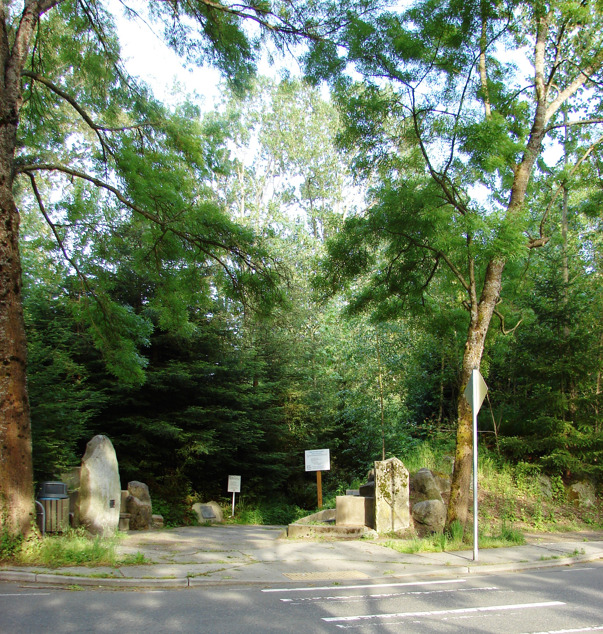 Meadowbrook Pond entrance on 35th Ave NE is marked with boulders and signage