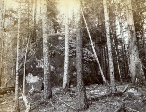 This photo of Wedgwood Rock may be as early as 1890. It was then called Lone Rock or Big Rock. Photo in the William F. Boyd Album, University of Washington Special Collections.