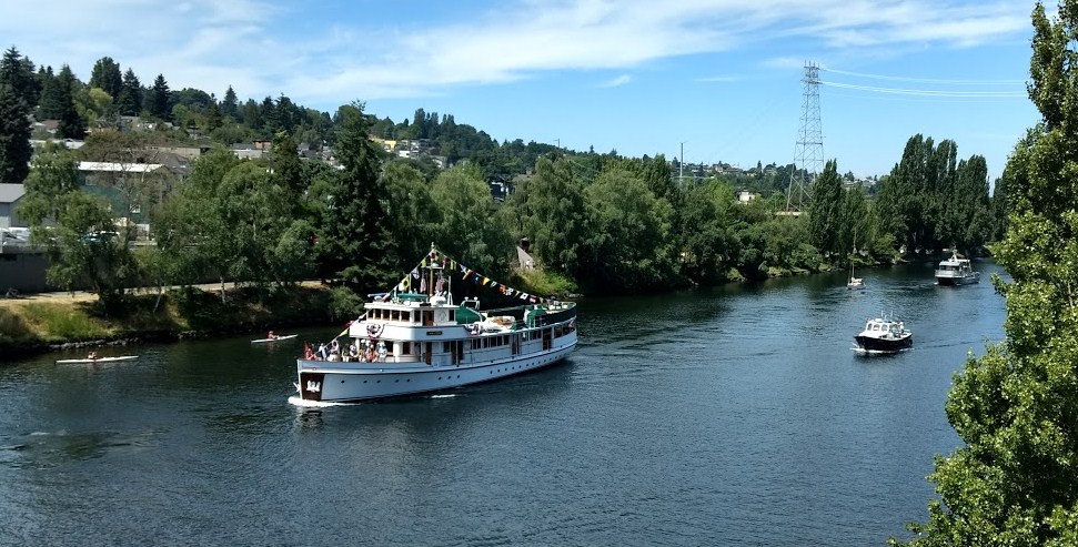 Boat parade on July 9, 2017, to celebrate the hundredth anniversary of the Lake Washington Ship Canal.