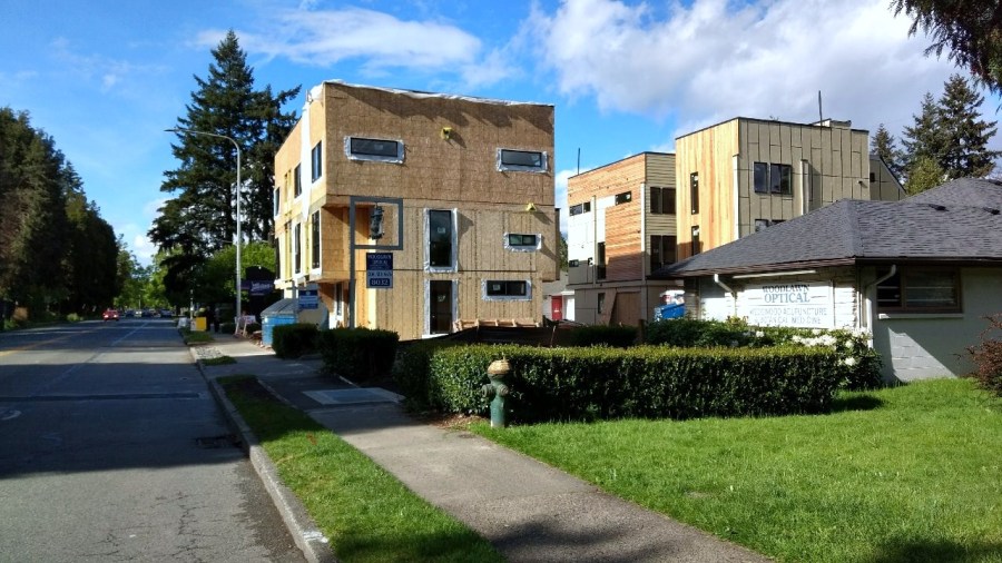 Three-story townhouses are being built in place of just one low-scale building at 8038 35th Ave NE.