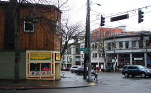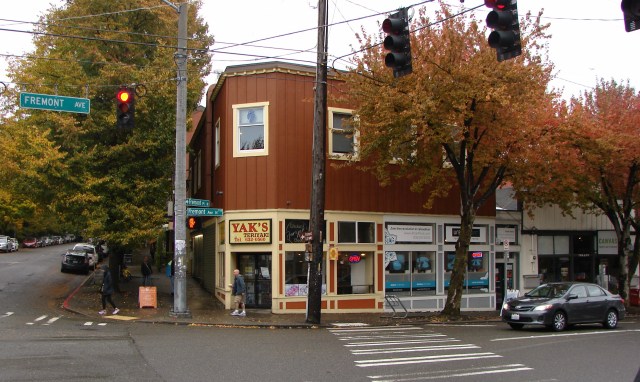 The building at left, on the corner of 35th and Fremont Avenue was the first site of the Queen City Bank in 1922. Photo by Valarie.