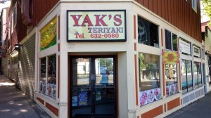 This wood-frame building served as the home of Queen City Bank 1922-1925. Photo by Valarie. As of June 2018 Yak’s Teriyaki is closed and a Korean deli is in this building.