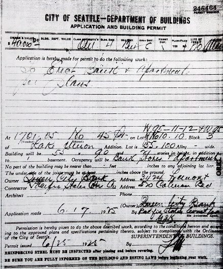 Construction permit for the first portion of the Queen City Bank building in Wallingford in 1925.