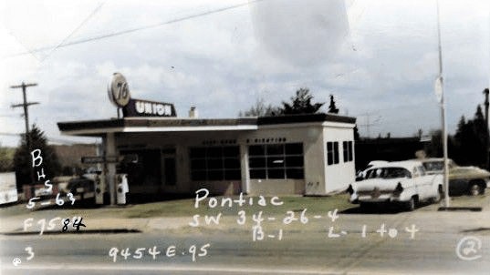 There has been a gas station at 9500 35th Ave NE since 1932. The barber shop (red building) also dates from that year.