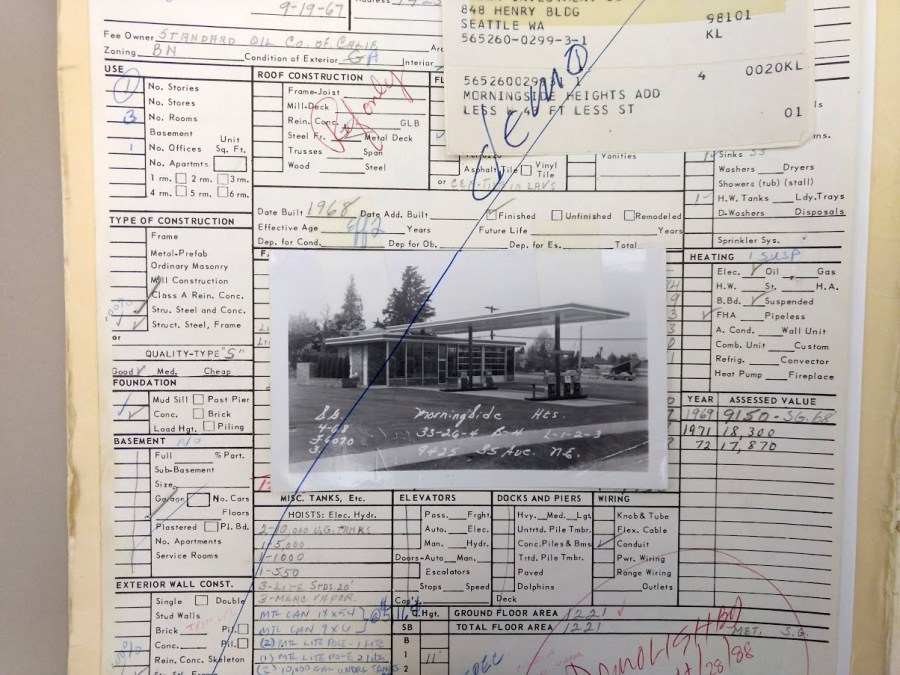 The Chevron Station at 9425 35th Avenue NE, present site of the Morningside Heights apartments, was torn down in 1988.