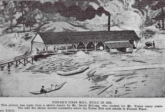 Henry Yesler’s sawmill, established in March 1853, was a vital part of the economy of early Seattle.