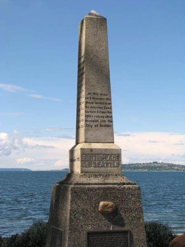 There is a Birthplace of Seattle monument at Alki Beach in West Seattle.