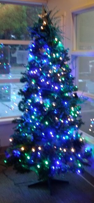 Homestreet Bank lobby blue tree.Christmas 2018