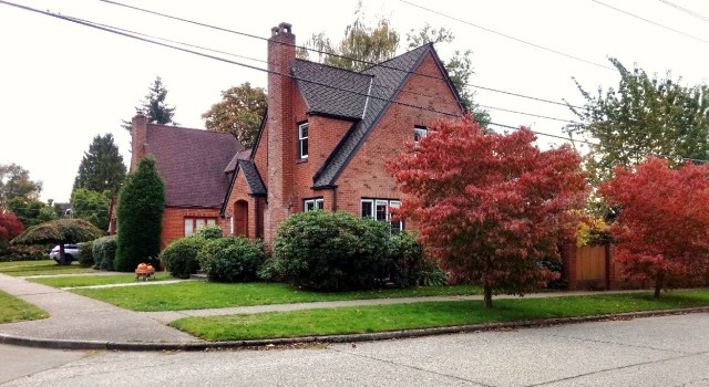The corner of 34th Ave NE at NE 68th Street now has these three brick houses built in 1948, on the former site of the Ruth School.