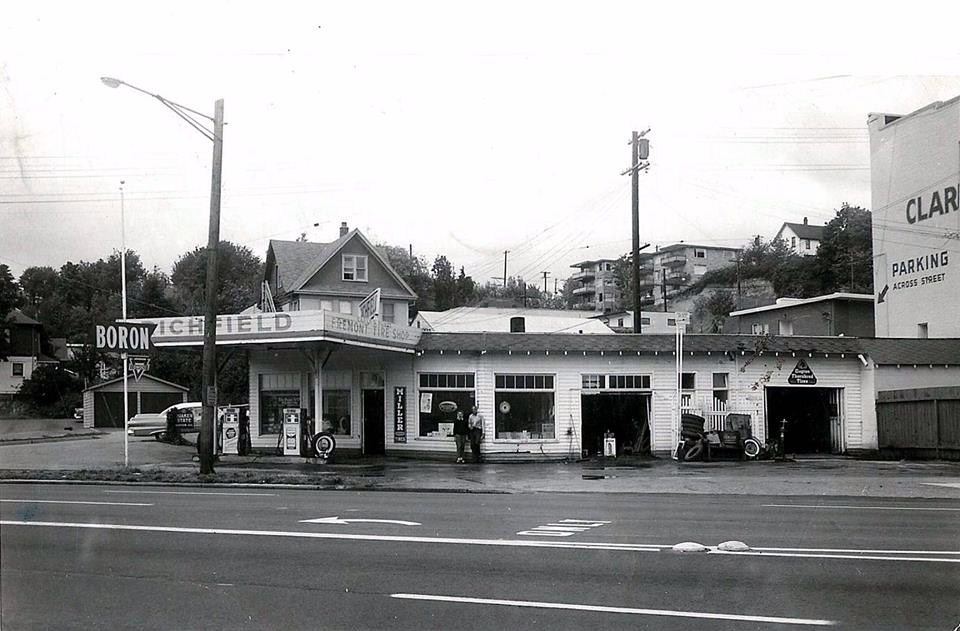 Fremont Tire and Richfield gas station in the 1950s. Photo courtesy of the Seattle Vintage Facebook page.