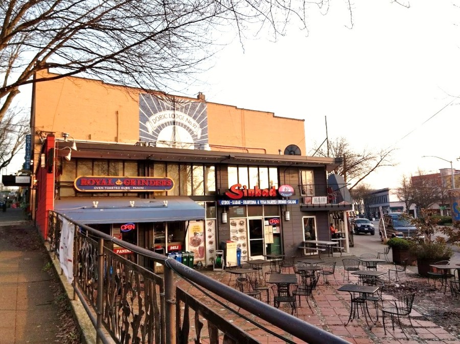 The eastern portion of “Lenin Plaza” in Fremont has food shops as well as an outdoor seating area. Photo by Valarie.