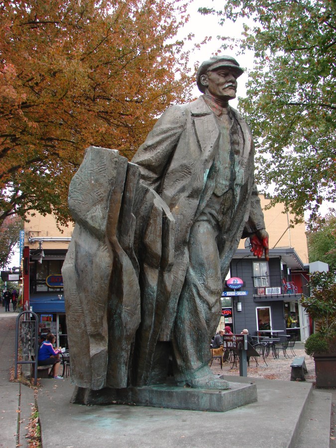 Today a statue of Lenin stands on the triangular lot, former site of the Fremont Tire Shop. Photo by Valarie.