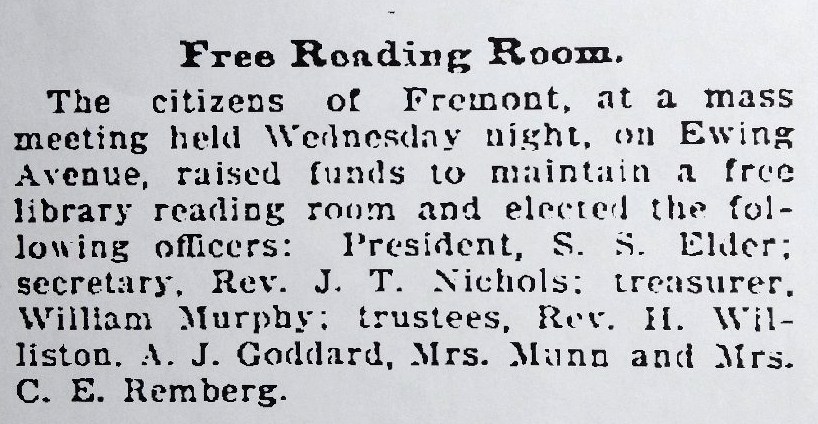 Seattle Daily Times article of January 26, 1900, about the new Reading Room in Fremont.