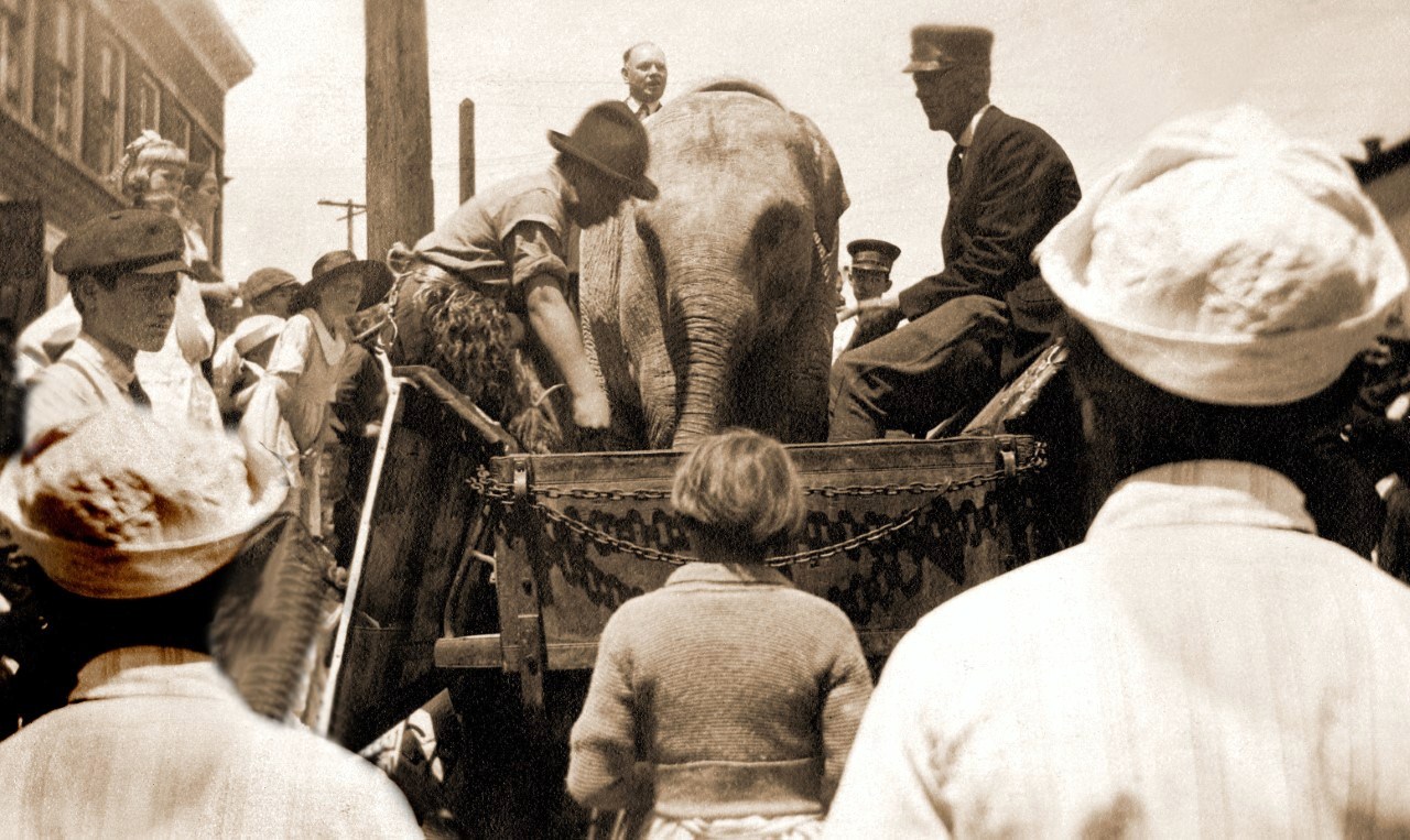 Children of the Fremont neighborhood crowded around to see Wide Awake the elephant on her parade day, June 25, 1921.
