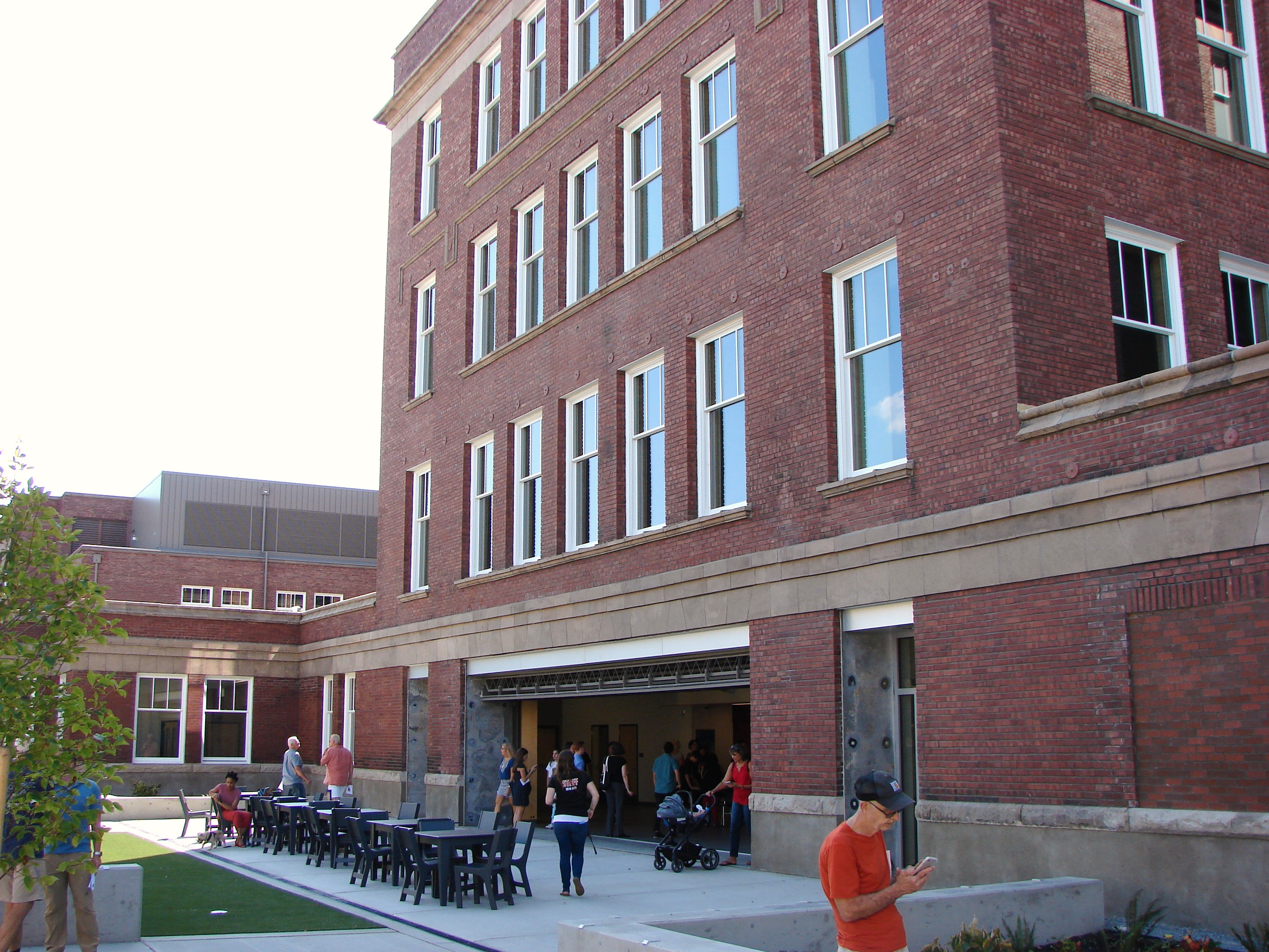 A new commons area for eating and socializing has doors which open out onto a central courtyard between buildings at Lincoln High School. Photo by Valarie.