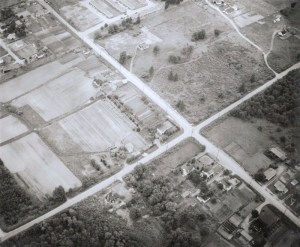 King County aerial mapping shows the intersection of NE 70th Street and 40th Ave NE in 1947. The Gebaroff house is at the northwest corner of the intersection, and the Girolamo house is on 40th to the north. Each family had land shown here as planted with fruit, vegetable and flowers. The William Rose house is south of the intersection, on the right margin of the photo.