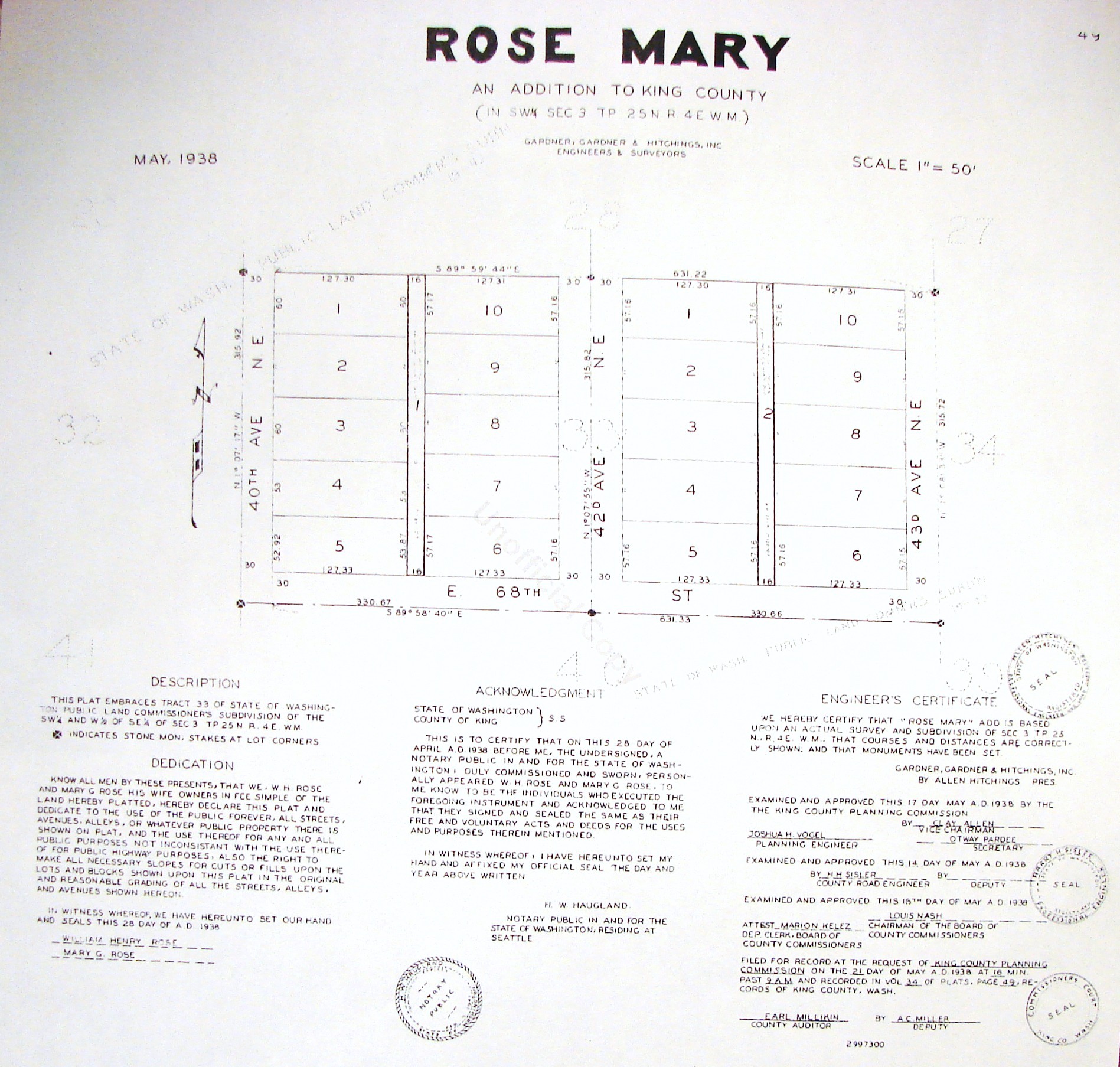 Rose Mary plat map filed 1938