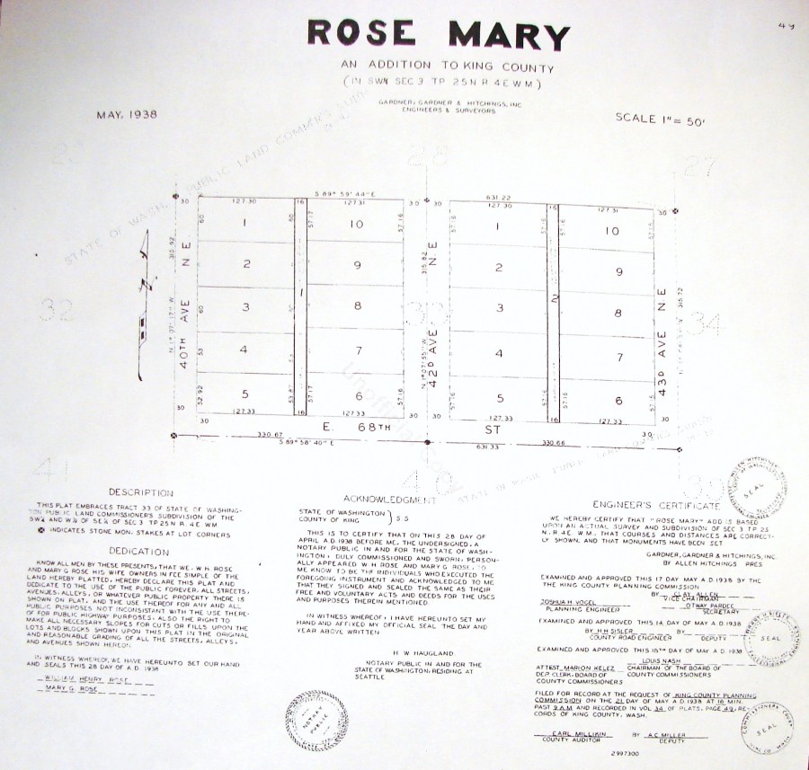 6808 40th Ave NE built 1944.Rose Mary plat property card photo