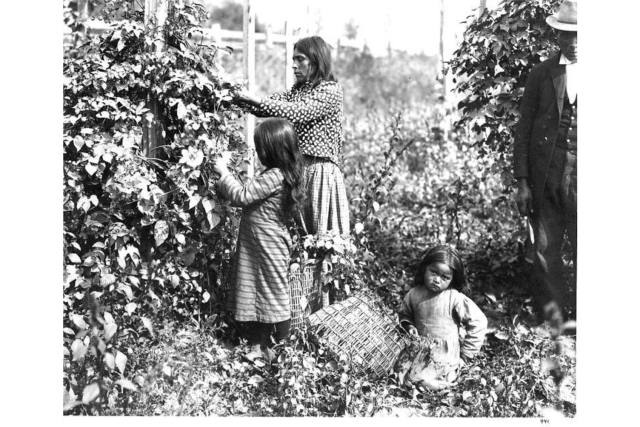 Working in the hop fields became a major source of employment for Indians living in the Duwamish & White River Valley. This photo is by Asahel Curtis, courtesy of University of Washington Special Collections.