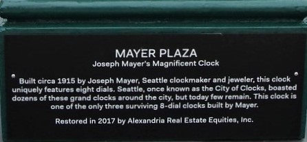 Street clock 406 Dexter closeup of plaque