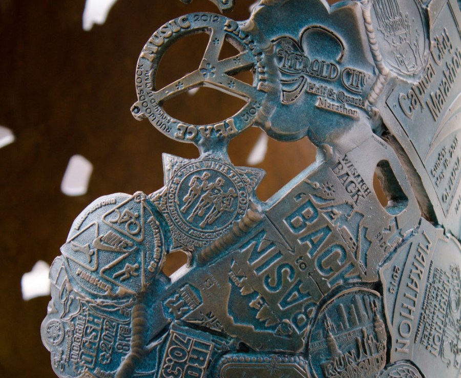 Race medals were fused to create The Medalist sculpture. Photo by Valarie.